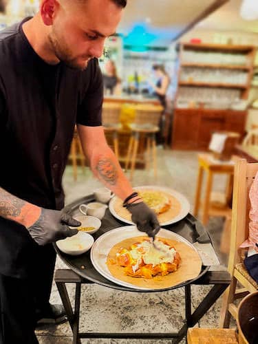 Galaktoboureko being served and topped with ice cream in Thessaloniki, Greece | Credit: Laurie McAndish King